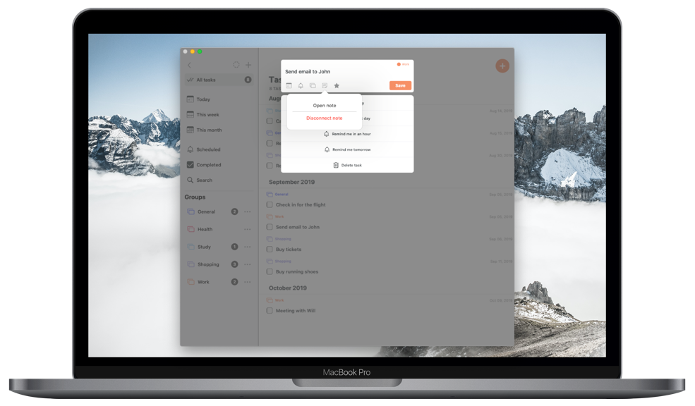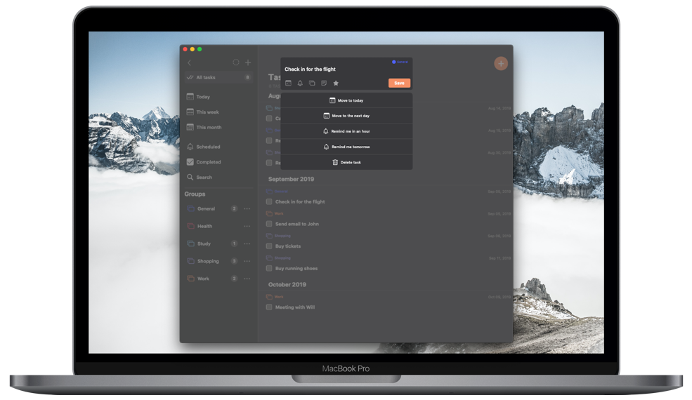 Remember everything: the products to buy and the business appointments. Organize your study and your days. Do all this simply, thanks to the intuitive interface.